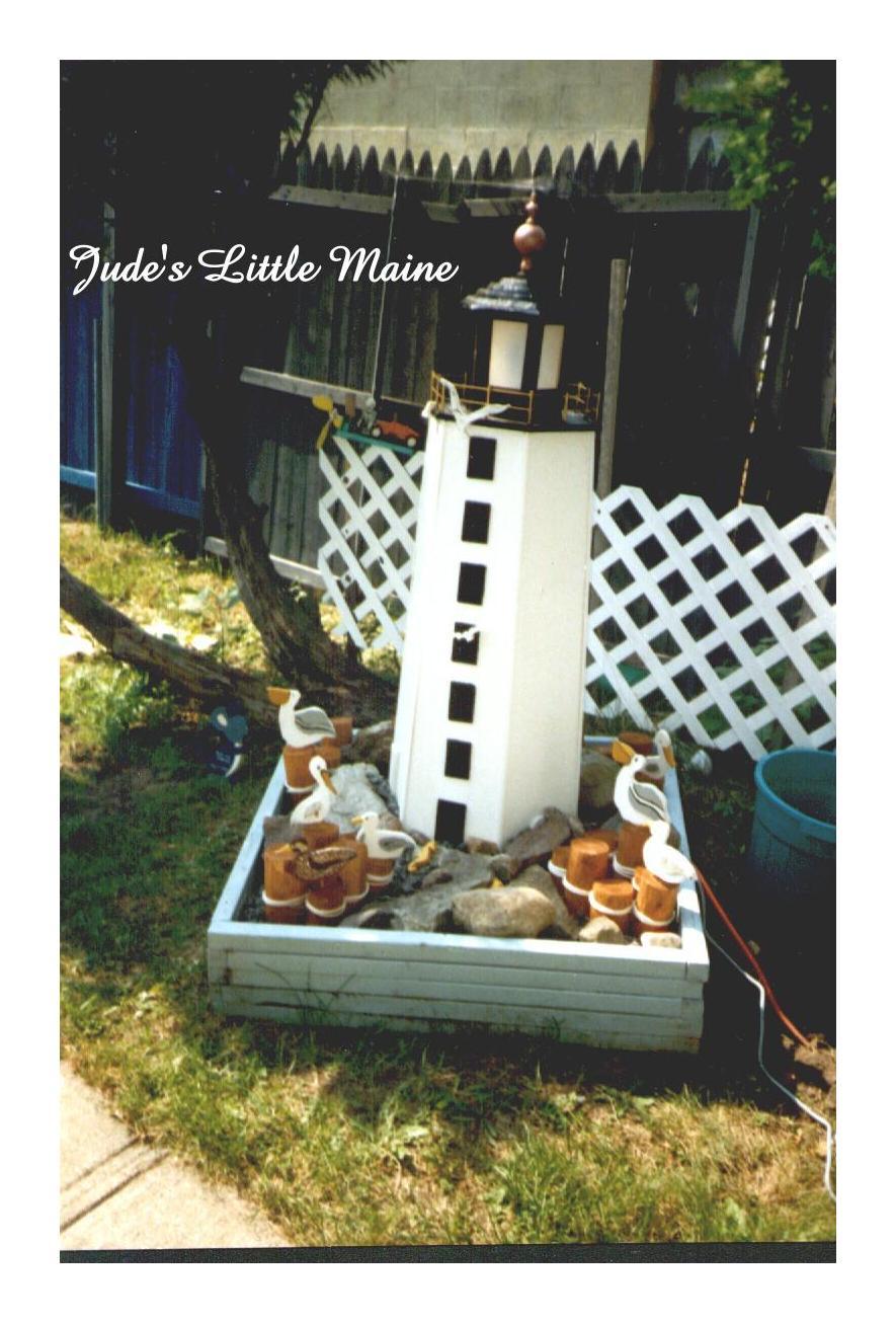 I built this lighthouse it sits in my friends' backyard and when I go there it reminds me of our trip to Maine.